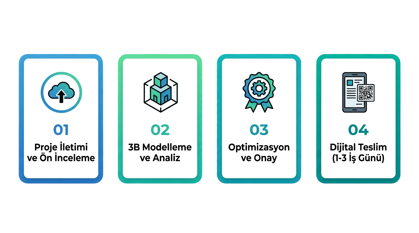 📥 Adım 1: Proje İletimi ve Ön İnceleme: Projelerinizi dijital ortamda bize iletiyorsunuz. Mühendislerimiz evraklarınızı hızla kontrol eder.