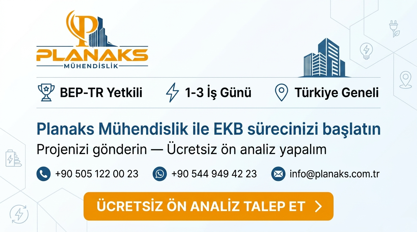 Planaks Mühendislik ile Maliyet Optimizasyonu: Bu yasal şartları sağlarken projeye rastgele paneller veya cihazlar eklemek yüz binlerce liralık israf demektir. Planaks Mühendislik olarak; BEP-TR yazılımı üzerinde detaylı analizler yaparak yasal şartları en uygun bütçeyle ve en doğru sistemle sağlamanız için mühendislik danışmanlığı veriyoruz.